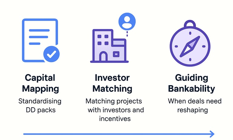 Identify gaps, reshape your deal, and boost bankability with AI-driven diagnostics tailored to your project.