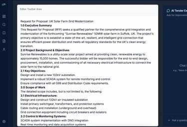 Draft customized applications quickly, enhancing your chances of winning cleantech tenders effortlessly.
