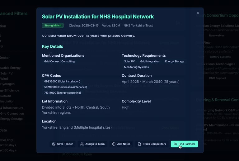 Spot high-value tenders early, assess them with precision, and connect with the right partners.